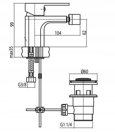 Bateria bidetowa stojąca VALVEX Loft Black - DANE TECHNICZNE: