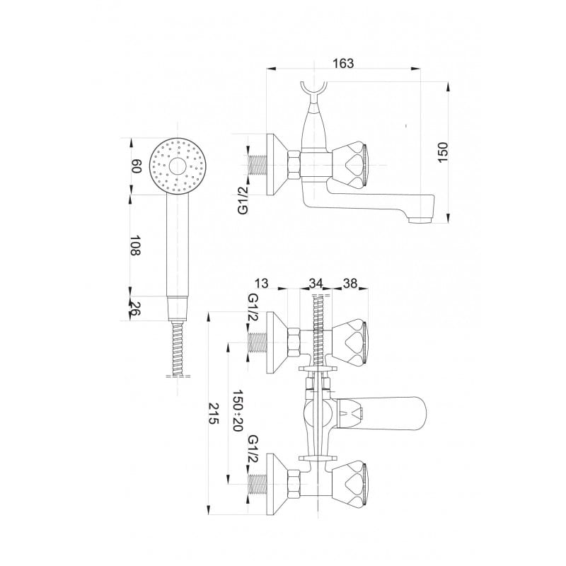 - Przyłącze mimośrodowe G ½”, rozstaw 150 ± 20 mm
