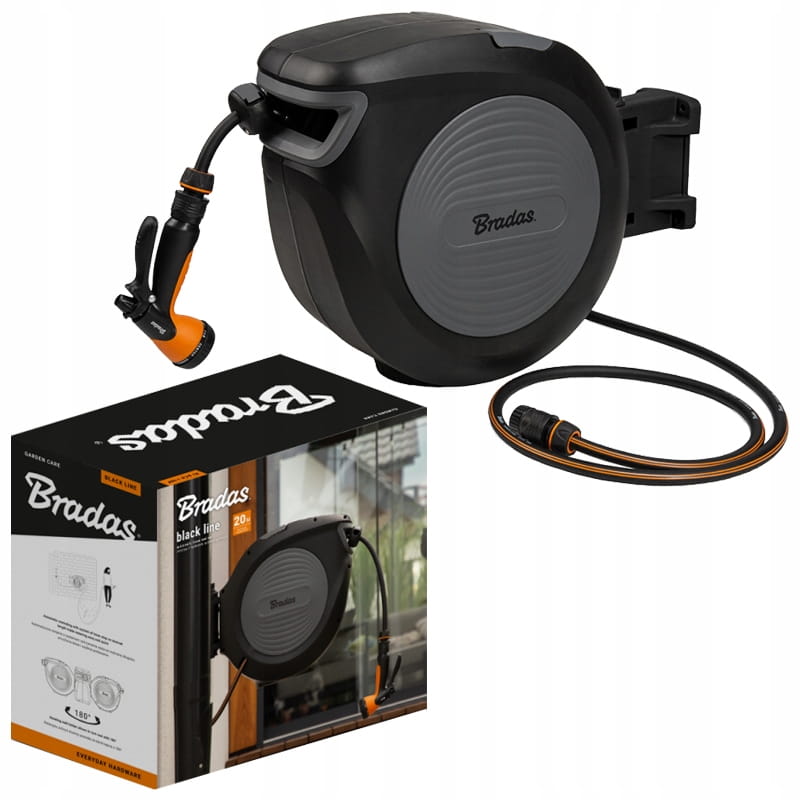 Bęben automatyczny z wężem 1/2" - 20m i akcesoriami BLACK LINE BRADAS