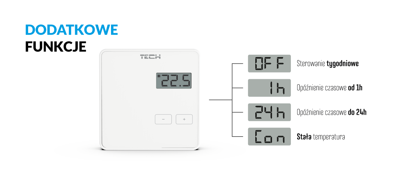 Produkt C-8r marki TECH to bezprzewodowy, dwustanowy, pokojowy regulator temperatury kompatybilny z listwą L-8, która steruje zaworami termostatycznymi.