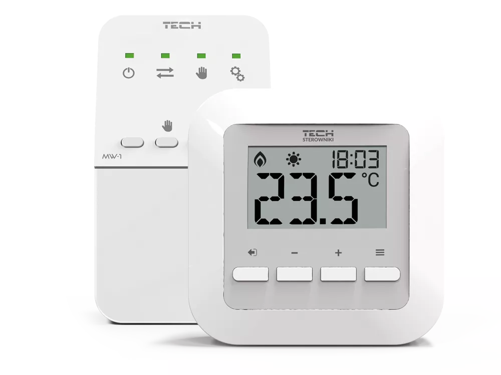 Sterownik TECH ST-295 V2 to regulator pokojowy, który umożliwia kontrolowanie pracy urządzenia grzewczego. Komunikuje się bezprzewodowo przy wykorzystaniu modułu zamontowanego i podpiętego do urządzenia grzewczego. ST-295 v2 pozwala na ustawienia zadanej temperatury w pomieszczeniu z dokładnością do 0,1 stopnia C.