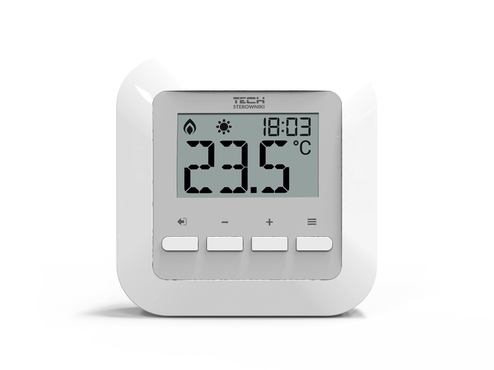 Regulator pokojowy TECH ST-295 w odróżnieniu od ST-294 ma możliwość ustawienia innej temperatury na noc oraz na dzień. Dzięki temu można zastosować inna temperaturę w ciągu dnia i w nocy. Jego ogromną zaletą są małe rozmiary i nowoczesny design. Gdy zastosujemy dodatkowy czujnik temperatury podłogi (czujnik NTC) sterownik St-295 będzie sterował według temperatury podłogi.