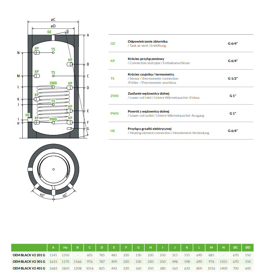 Bufor OEM Energy Black V4 401 G litrów z jedną wężownica z izolacją