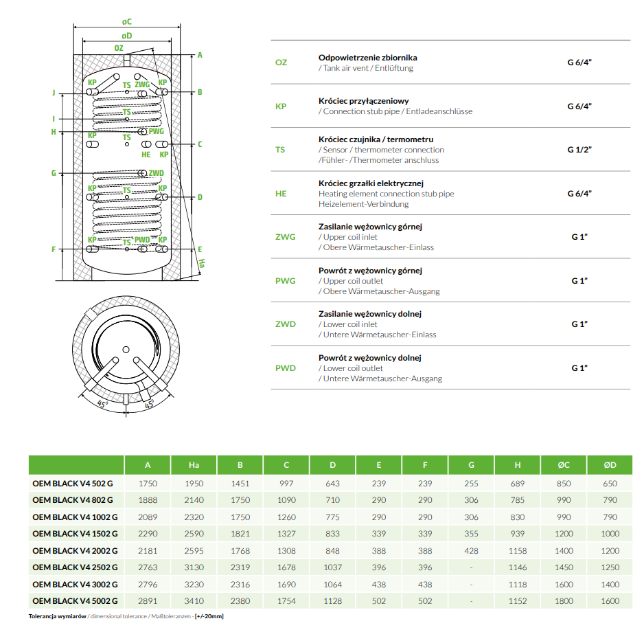 Bufor OEM Energy Black V4 0802 G litrów z dwiema wężownicami z izolacją