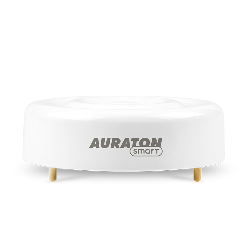 opadające na taflę wody krople. Piękną formę podkreślają nóżki pokryte 24 karatowym złotem, które odróżnią prawdziwą powódź od chwilowego zalania czujnika. Czujnik Auraton Flood Sensor służy do wykrywania zalania w kontrolowanym pomieszczeniu. Urządzenie jest przewidziane do współpracy z zaworem odcinającym wodę Auraton Flood Sensor Valve. Jeden zawór FSV obsługuje maksymalnie 10 czujek.