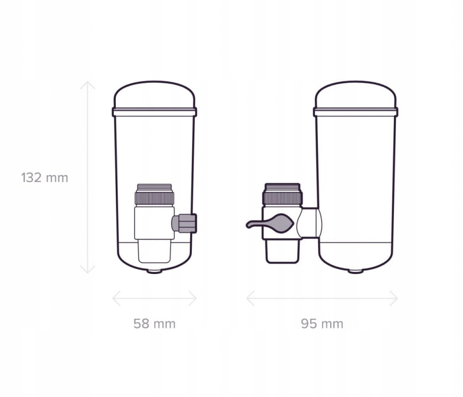 - Wymiary filtra (śred. x szer. x wys.): 58 x 65 x 132 mm