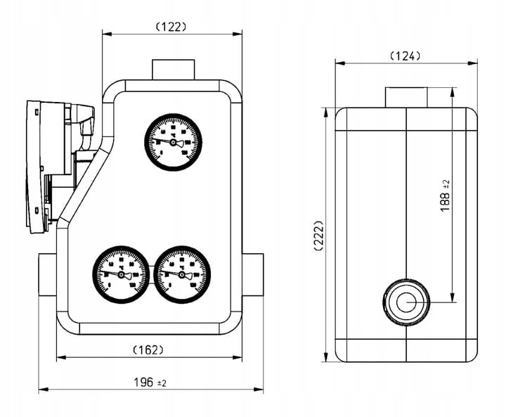 - Trzy termometry, umieszczone na każdym przyłączu