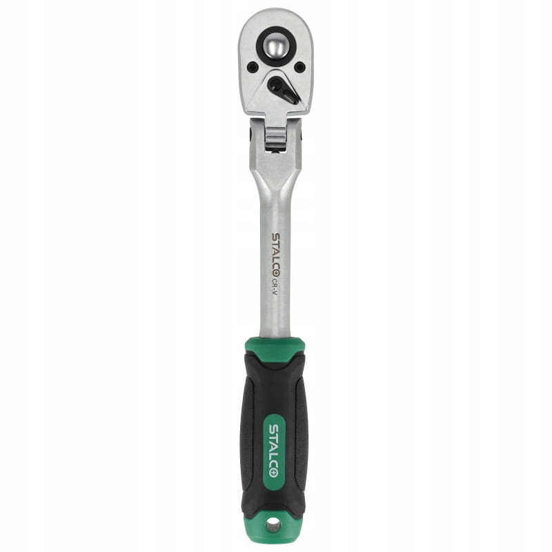 Grzechotka uchylna STALCO jest narzędziem bardzo trwałym i świetnie spisującym się w pracach warsztatowych. Została wykonana ze stali narzędziowej chromowo-wanadowej o dobrych parametrach wytrzymałościowych. Ergonomiczny uchwyt pozwala na pracę z dużą siłą. W grzechotce zastosowano trzpień narzędziowy półcalowy, który można wykorzystać do obsługi najpopularniejszych typów nasadek.