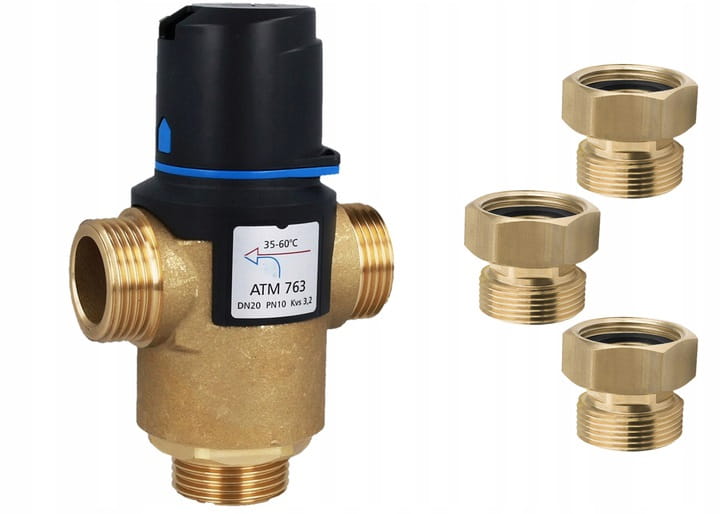 AFRISO ATM 763 to termostatyczny zawór mieszający przeznaczony do regulacji temperatury w domowych instalacjach ciepłej wody użytkowej oraz centralnego ogrzewania. Posiada funkcję "bez oparzeń".
