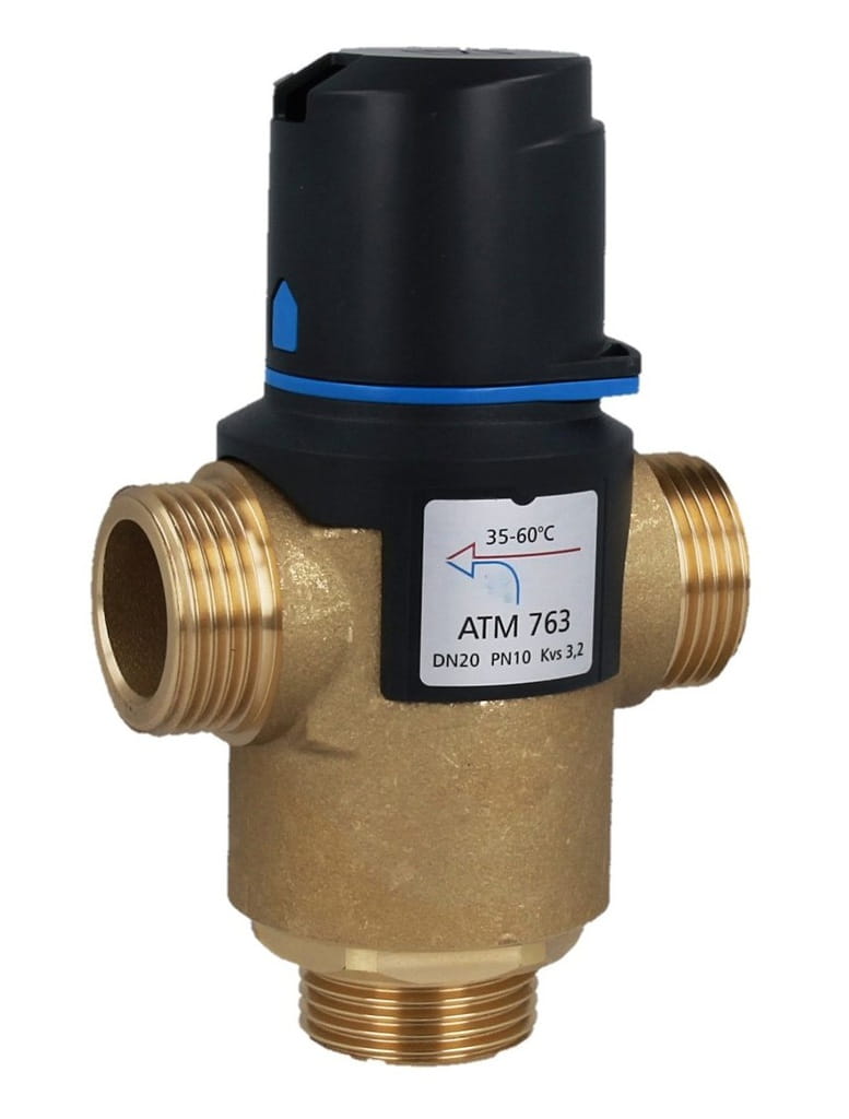 Zawory termostatyczne mieszające ATM powinny być stosowane wszędzie tam, gdzie niezbędna jest ochrona przed poparzeniem oraz wskazana jest szybka reakcja na zmiany temperatury i ciśnienia wody. Zawory ATM umożliwiają bezpieczne przegrzewanie wody w zasobnikach c.w.u. w celu ochrony przed bakteriami Legionelli, bez narażania użytkowników na poparzenie. Funkcja "bez oparzeń" powoduje zablokowanie dopływu wody ciepłej w wypadku awarii dopływu wody zimnej. W instalacjach grzewczych, np. ogrzewania podłogowego zawory ATM mogą zastępować rozbudowane i kosztowne układy regulacji. Pod plastikową pokrywką, chroniącą przed przypadkową zmianą nastawy, znajduje się pokrętło do ustawienia temperatury wody zmieszanej. Zawory termostatyczne ATM podczas pracy nie wymagają czynności konserwacyjnych i mogą być montowane w dowolnej pozycji. Przeznaczone są do pracy z czystą wodą lub wodą zawierającą maksymalnie 50% glikolu. Wykonane są z mosiądzu DZR.