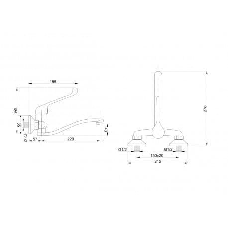 Bateria Atut umywalkowa ścienna z uchwytem łokciowym