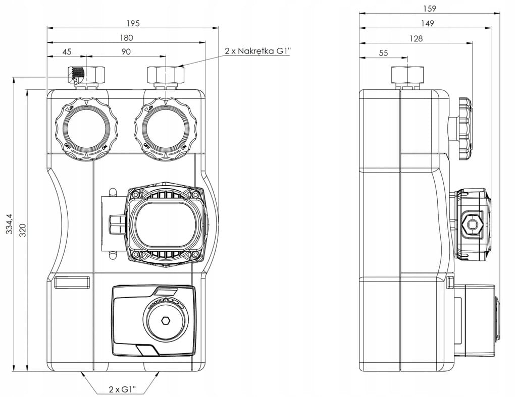 - przyłącza od strony źródła ciepła 2x G1½"