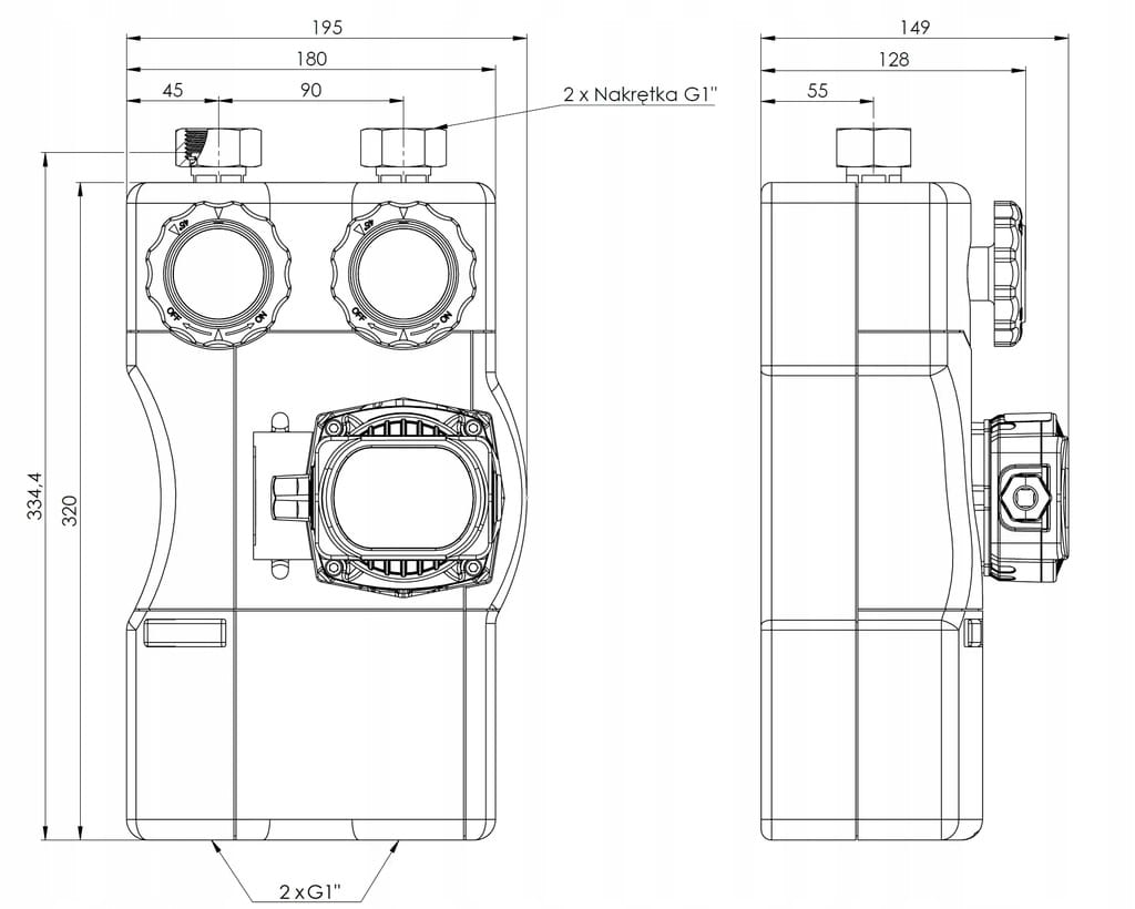 - przyłącza od strony rozdzielacza 2x G1"