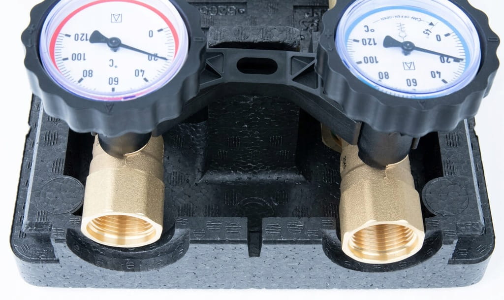 - Dwa termometry wbudowane w pokrętła zaworów odcinających