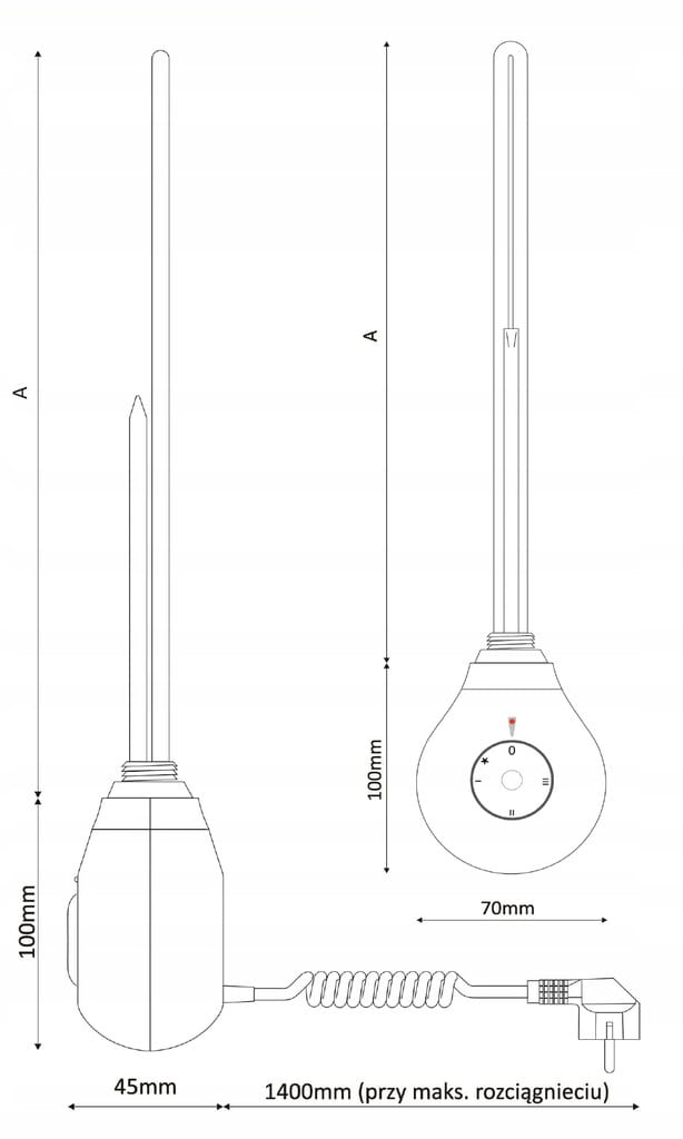 - Moc cieplna grzejnika [W] 600 – 900 : zalecana grzałka [W] 600