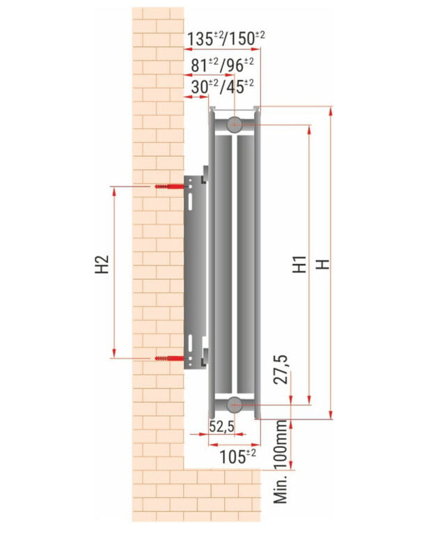Odległość od krawędzi zawieszki do krawędzi grzejnika (wysokość zawieszki 30mm): 137,5 mm