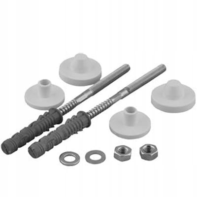 W skład zestawu wchodzą dwie śruby oraz dwie nakrętki wykonane ze stali ocynkowanej oraz dwie sztuki białych podkładek i kołków rozporowych wykonanych z tworzywa sztucznego.