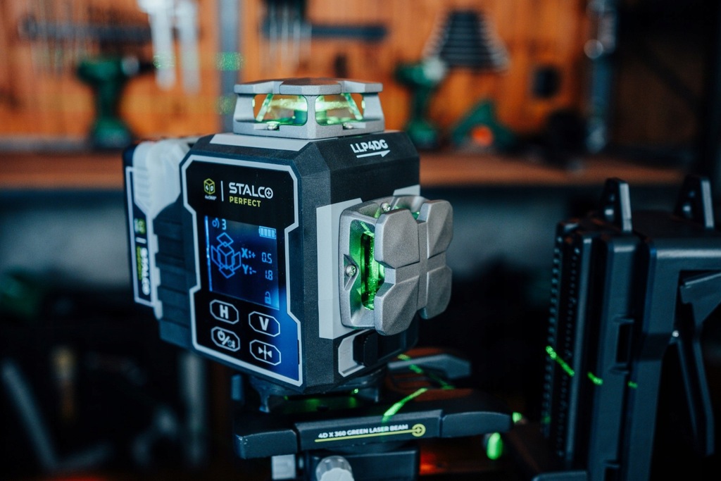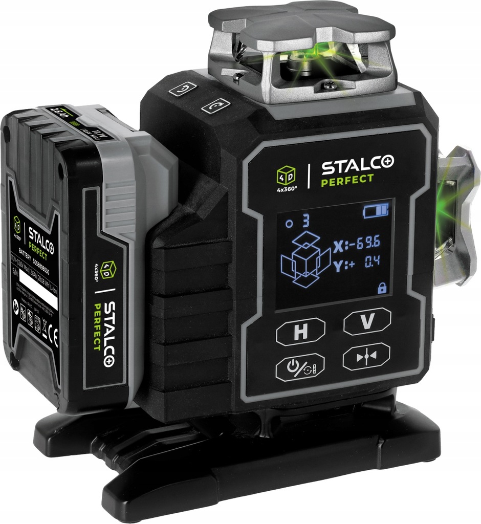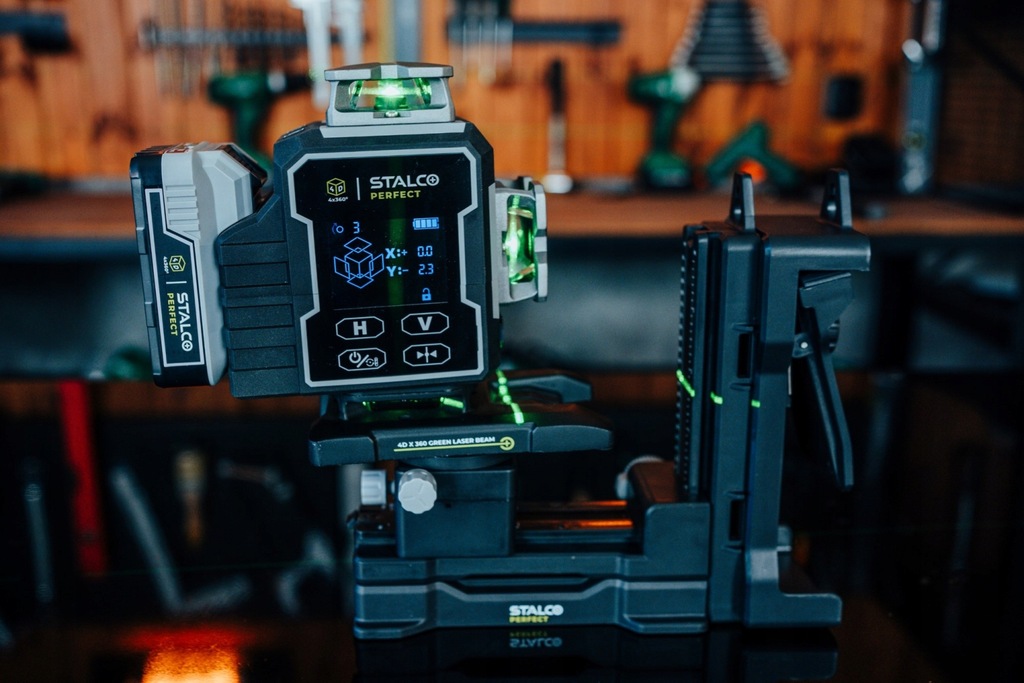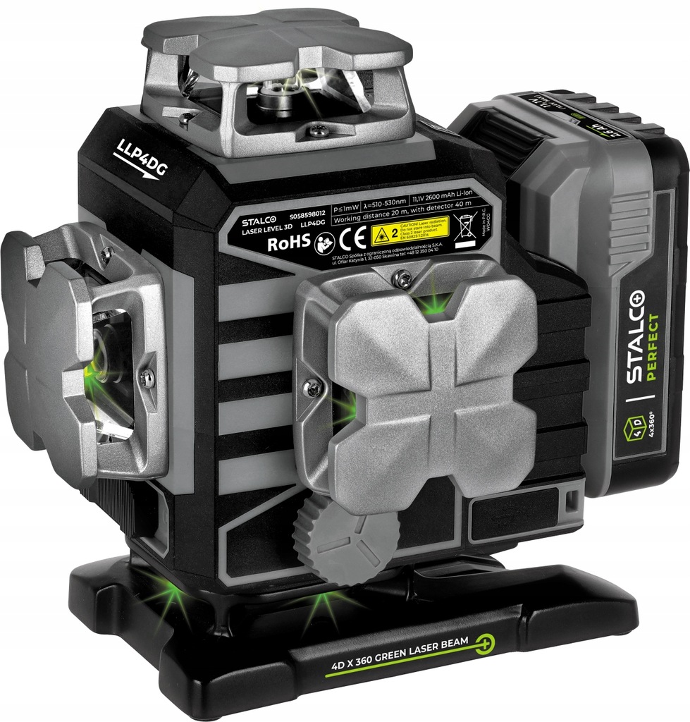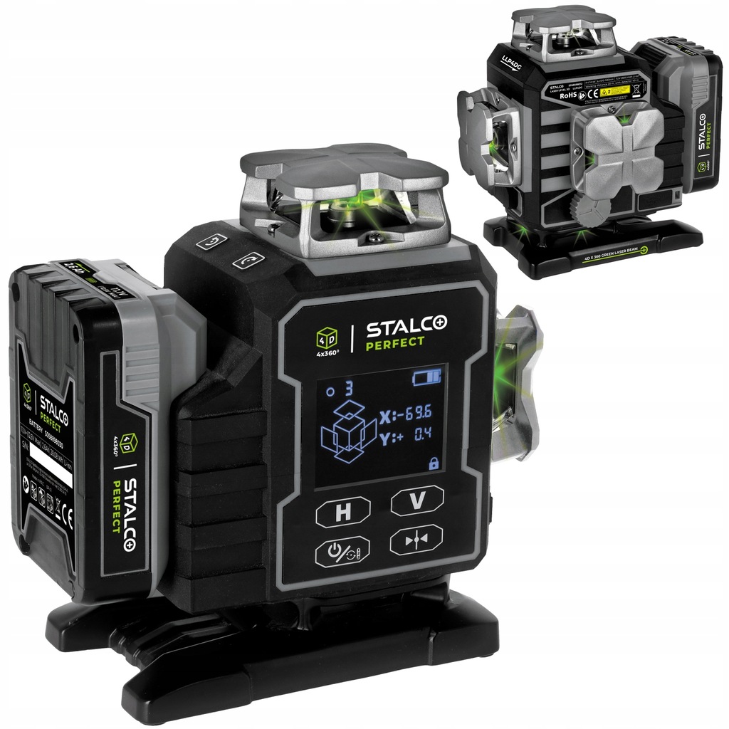 Laser krzyżowy 4D STALCO PERFECT LLP4DG zielony – 16 linii, Bluetooth, pilot, akumulatory