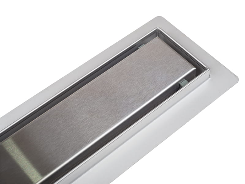 Dwustronny odpływ liniowy przeznaczony jest do zabudowy przy użyciu płytek ceramicznych lub marmuru. Doskonale komponuje się z podłogą w kabinie prysznicowej, tworząc harmonijną całość.