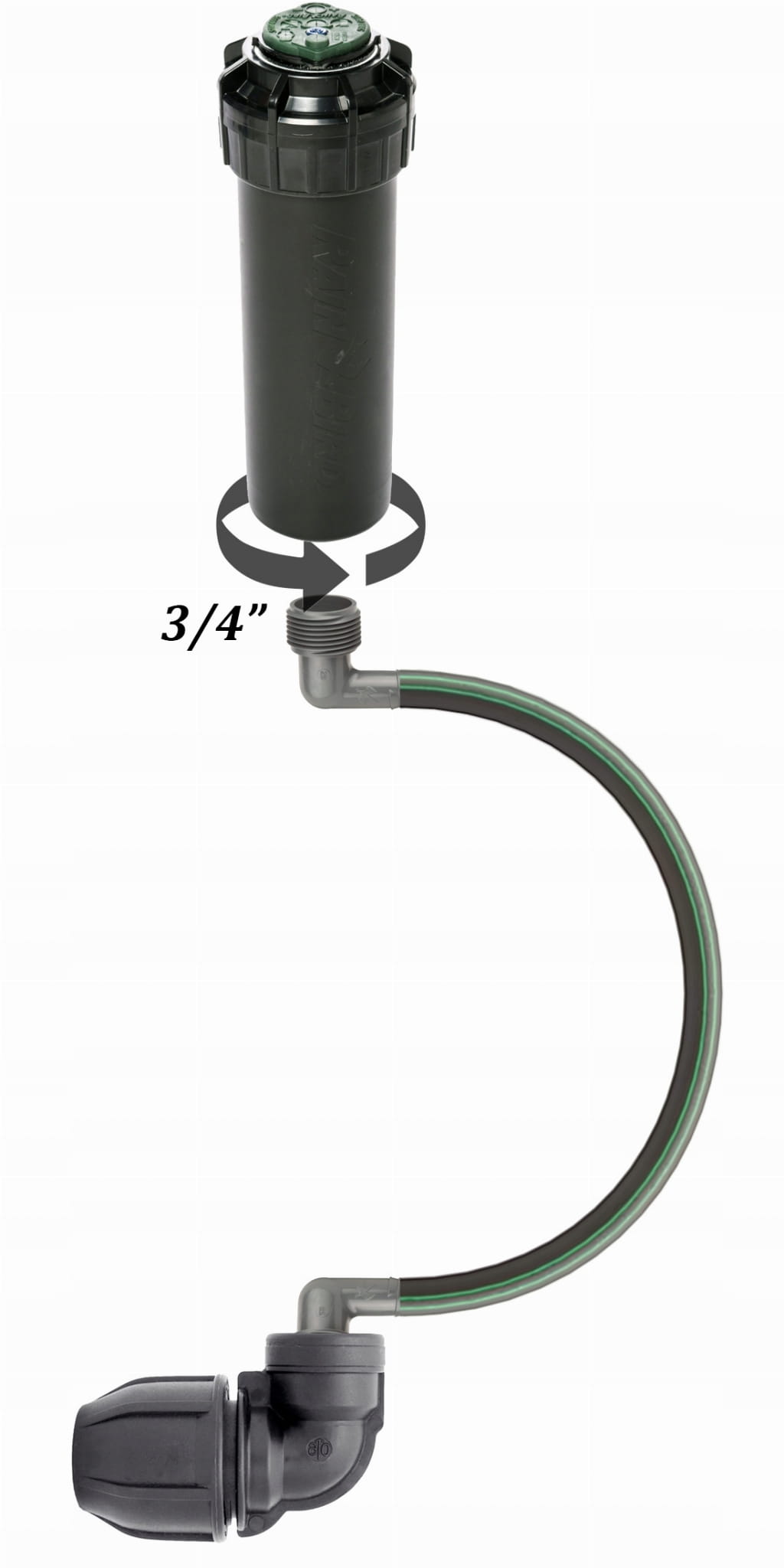 Połączenie elastyczne zraszacza z rurą PE - 25x3/4" Uniwersalny zestaw do rury PE 25 i wszystkich typów zraszaczy z gwintem 3/4"