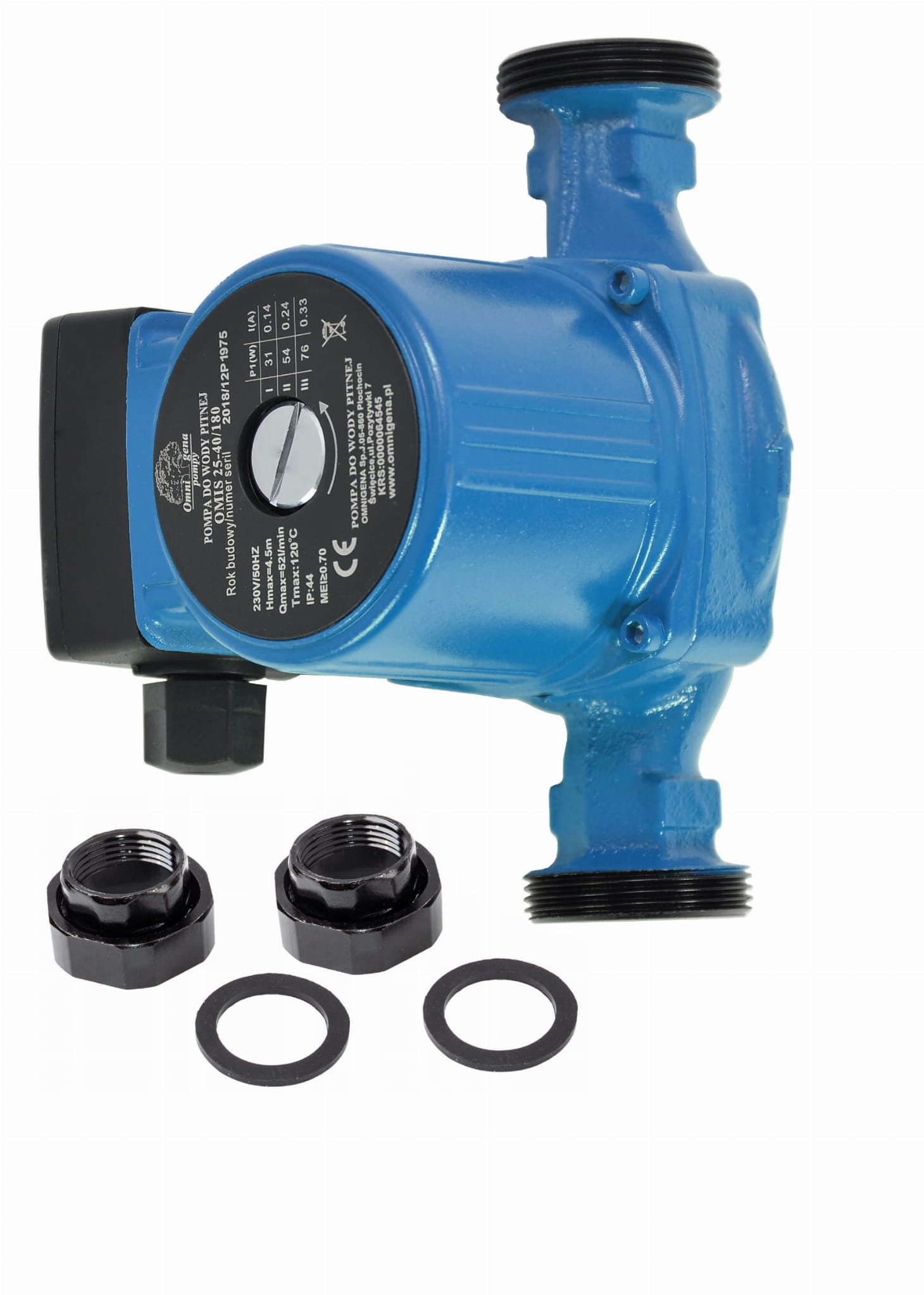 Pompa do centralnego ogrzewania Omnigena Omis 25/40 z rozstawem przyłączy 180mm + śrubunki