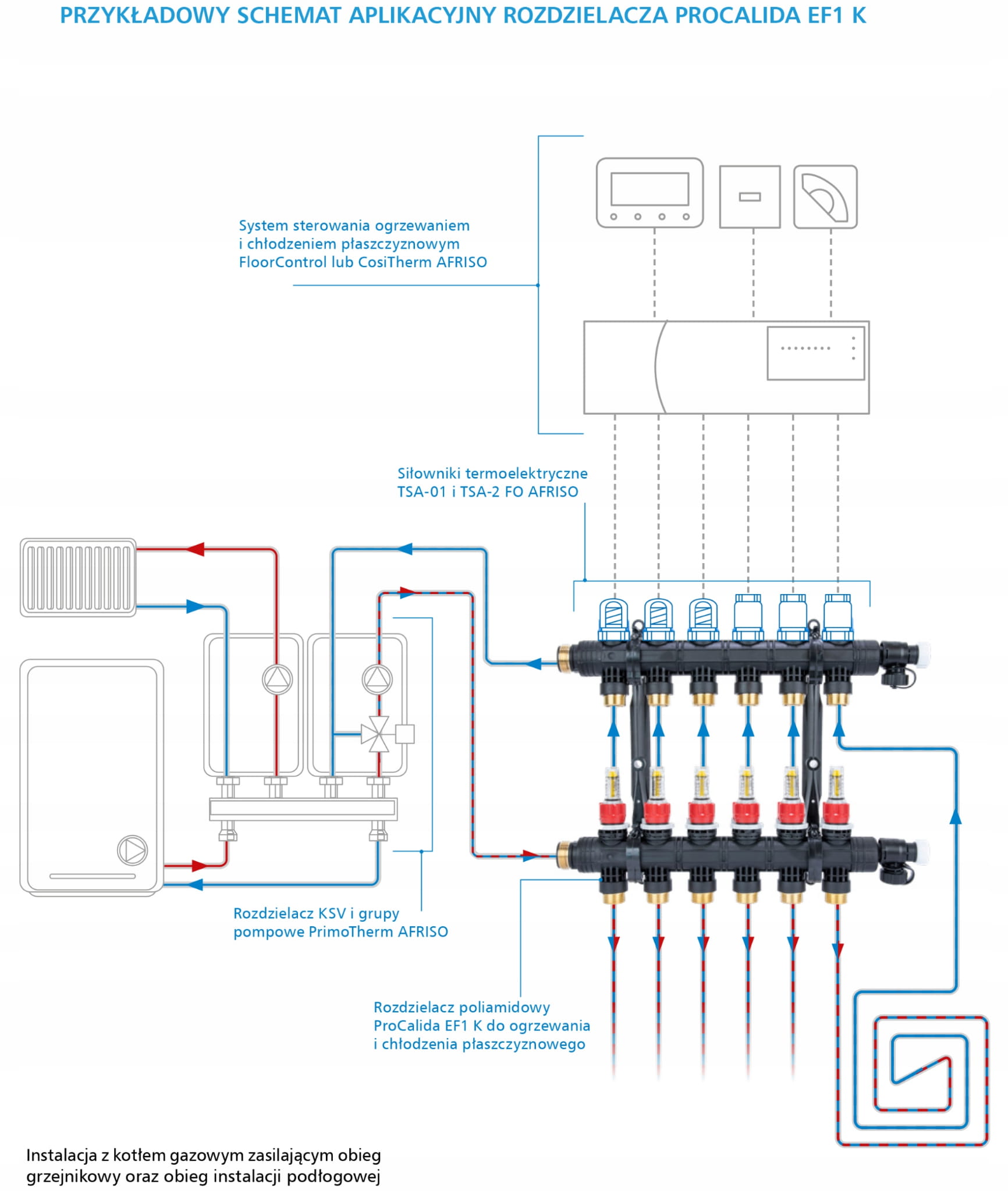 • Rozdzielacze poliamidowe ProCalida EF1 K stosuje się w instalacjach ogrzewania lub chłodzenia płaszczyznowego.