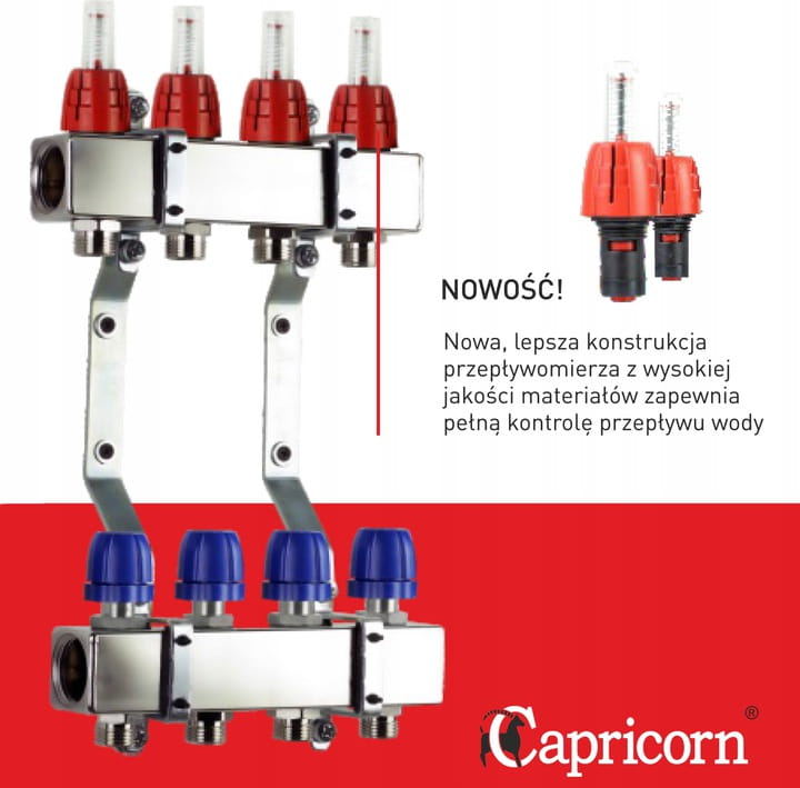 Rozdzielacze Capricorn zaprojektowane pod ogrzewanie płaszczyznowego są czołowym produktem pod kątem jakości i rozwiązań technicznych na rynku. Poszczególne elementy rozdzielacza zostały zaprojektowane i wykonane przez inżynierów Capricorn z dbałością o najmniejsze szczegóły oraz normy branży grzewczej. Szeroka konfiguracja rozwiązań regulacyjnych oraz dodatkowych opcji wyposażenia umożliwia dobór odpowiedniego modelu do potrzeb inwestycji.