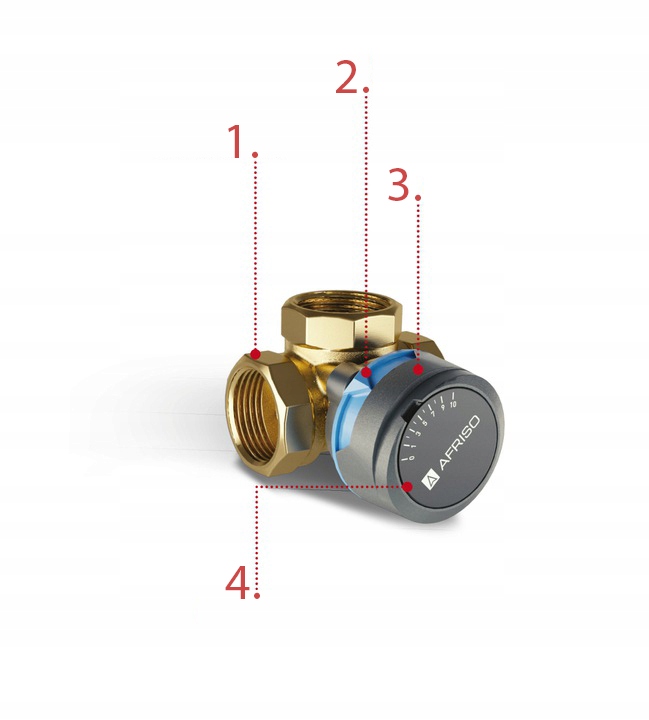 3. Wygodne pokrętło - Duże pokrętło z wyraźnym wskaźnikiem nastawy pozwala na łatwe i precyzyjne operowanie zaworem w trybie ręcznym.