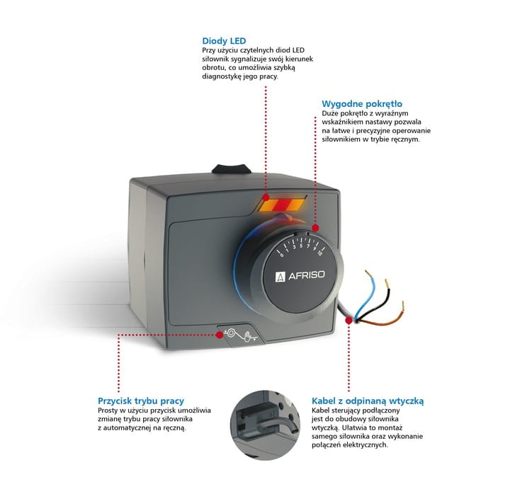 Dla wygodniejszej obsługi ręcznej, pokrętła w obrotowych zaworach mieszających ARV ProClick oraz siłownikach elektrycznych ARM ProClick są większe w stosunku do poprzedniej generacji.