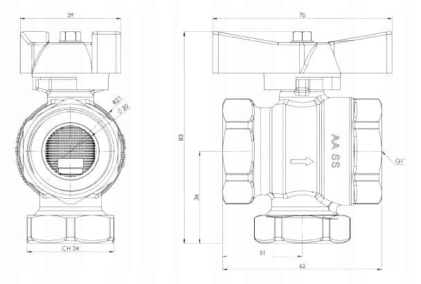 Zawór kulowy z filtrem siatkowym i magnesem BFV GW 1" CAL DN25 AFRISO