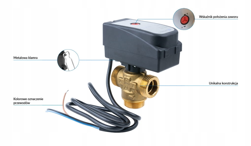 - Prosty odczyt aktualnej pozycji zaworu dzięki wskaźnikowi na siłowniku