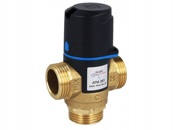 ATM 361 - termostatyczny zawór mieszający przeznaczony do regulacji temperatury w domowych instalacjach ciepłej wody użytkowej oraz centralnego ogrzewania. Posiada funkcję "bez oparzeń".