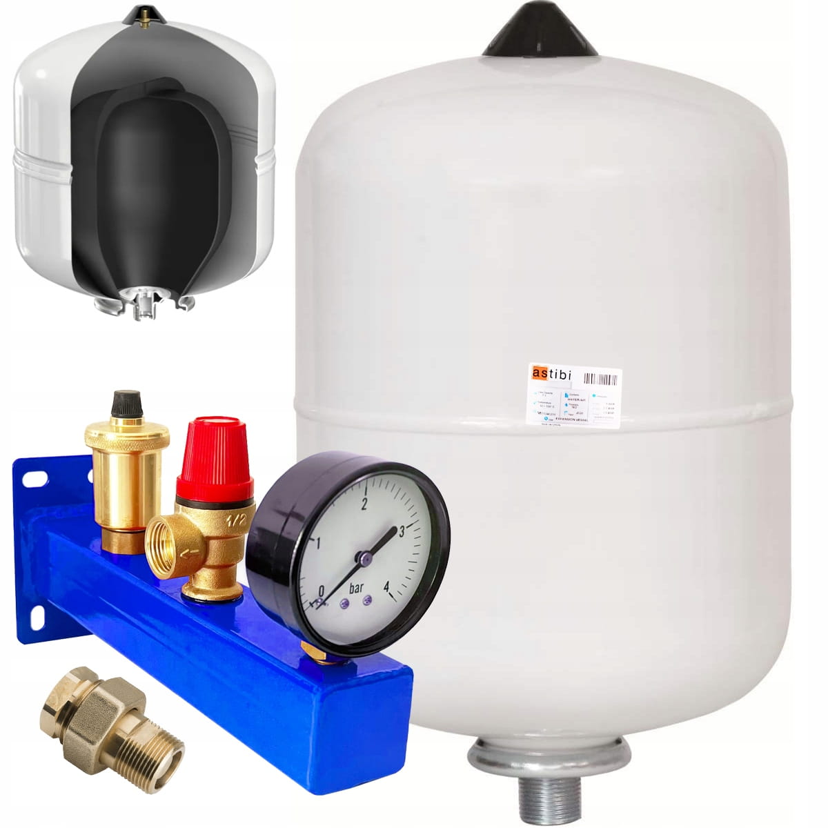 Zestaw C.W.U. 24 litry ASTIBI to kompletny zestaw do centralnego ogrzewania, który składa się z trzech elementów kluczowych. Pierwszym z nich jest naczynie przeponowe C.W.U. o pojemności 24 litry. Naczynie to absorbują wahania objętości wody w zamkniętym układzie, utrzymując stałe ciśnienie i pomagając ograniczyć zużycie energii. Wykonane z wysokiej jakości materiałów, naczynie zapewnia niezawodność i trwałość. Drugim elementem jest grupa bezpieczeństwa do C.W.U. o ciśnieniu 6 bar z odpowietrznikiem automatycznym. Grupa ta zabezpiecza układ przed niebezpiecznym wzrostem ciśnienia na skutek podwyższenia temperatury wody w instalacji. Trzecim elementem jest szybkozłącze z dwoma zaworami stopowymi do naczynia przeponowego o przekroju 3/4". Dzięki temu rozwiązaniu możliwe jest serwisowanie naczynia bez konieczności wypuszczania wody z instalacji. Cały zestaw został wykonany z wysokiej jakości materiałów, takich jak stalowa belka odporna na korozję, mosiądz czy lakier proszkowy. Produkt ten spełnia najwyższe standardy jakości i jest polecany wśród instalatorów.