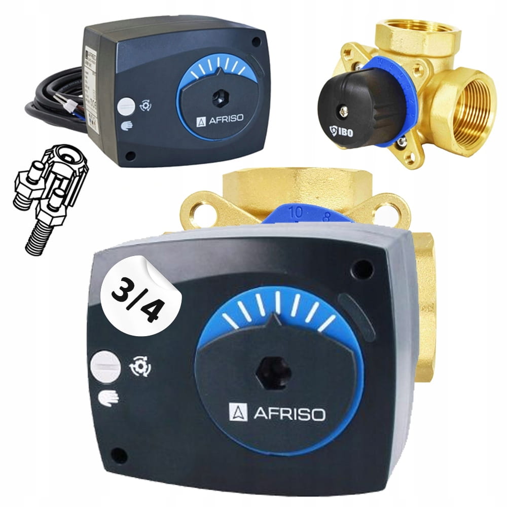Zestaw regulacyjny: zawór 3-drogowy mieszający IBO 3/4 DN32 + siłownik 3-pkt AFRISO ARM 141