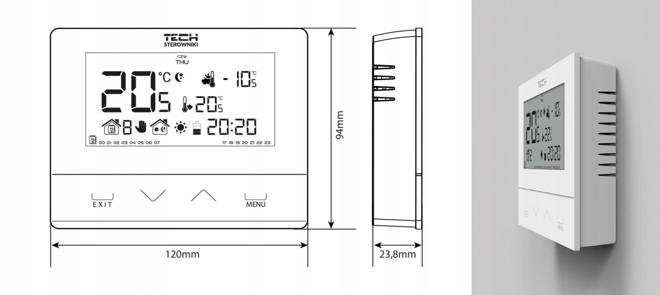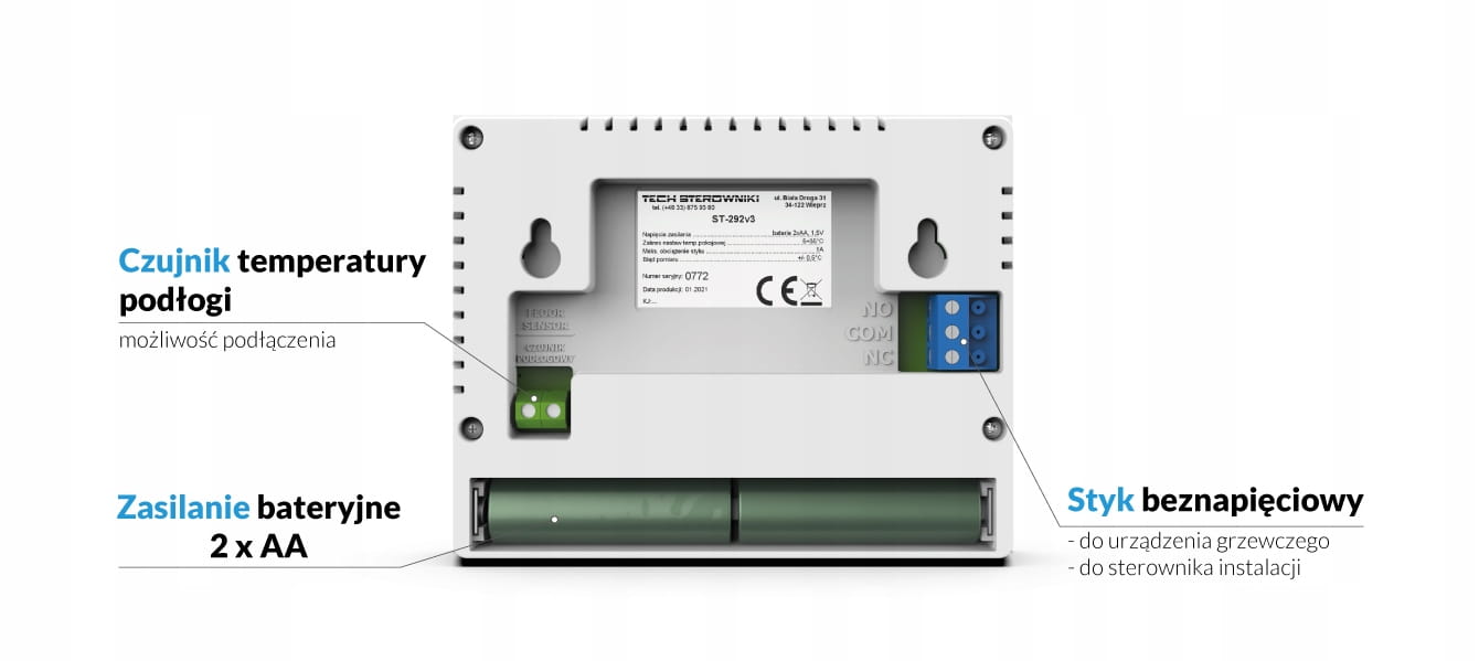 Przewodowy regulator pokojowy TECH ST-292 v3 - DANE TECHNICZNE: