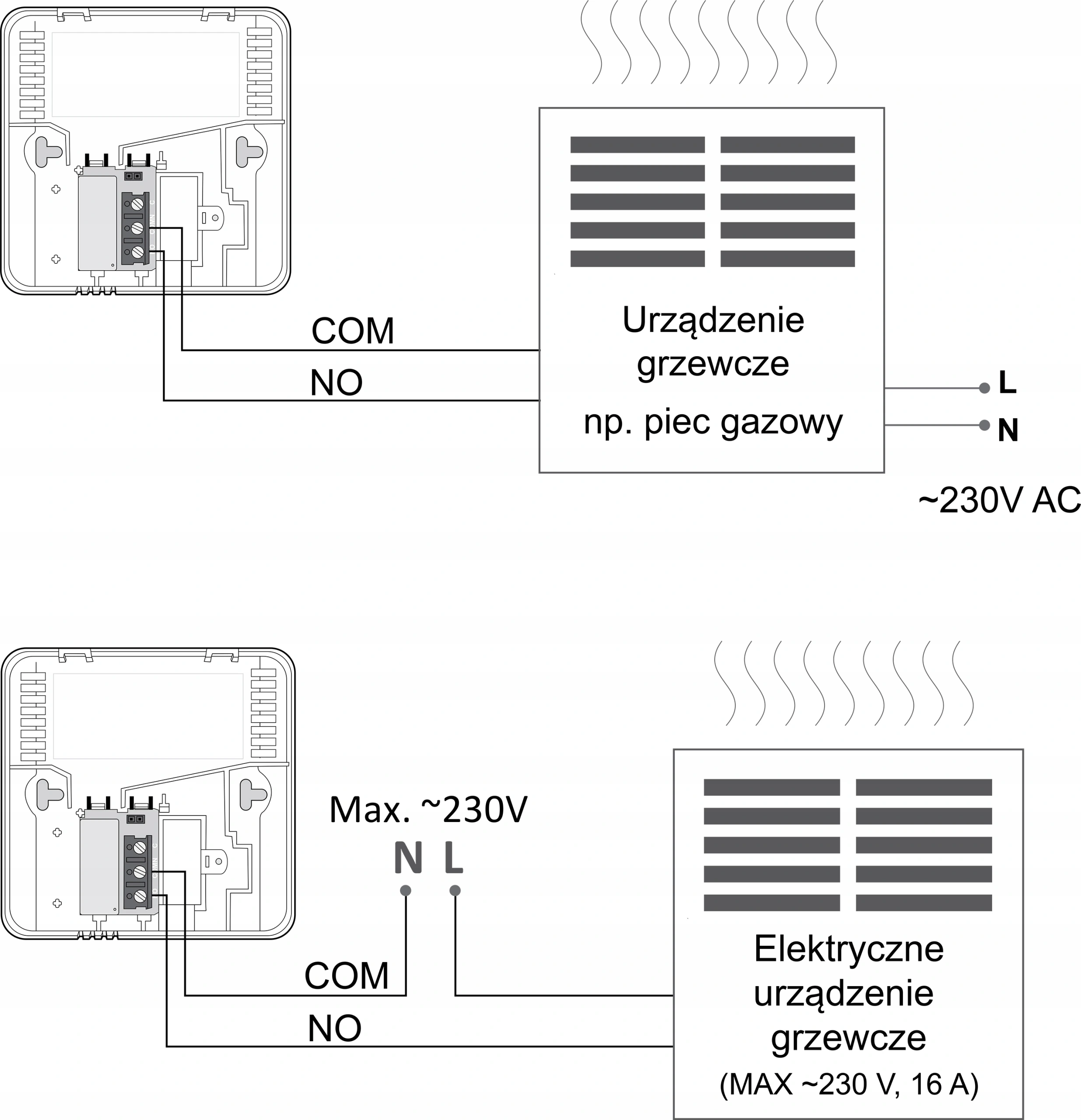 - Maksymalny prąd obciążenia: max. 250V AC, max. 16A
