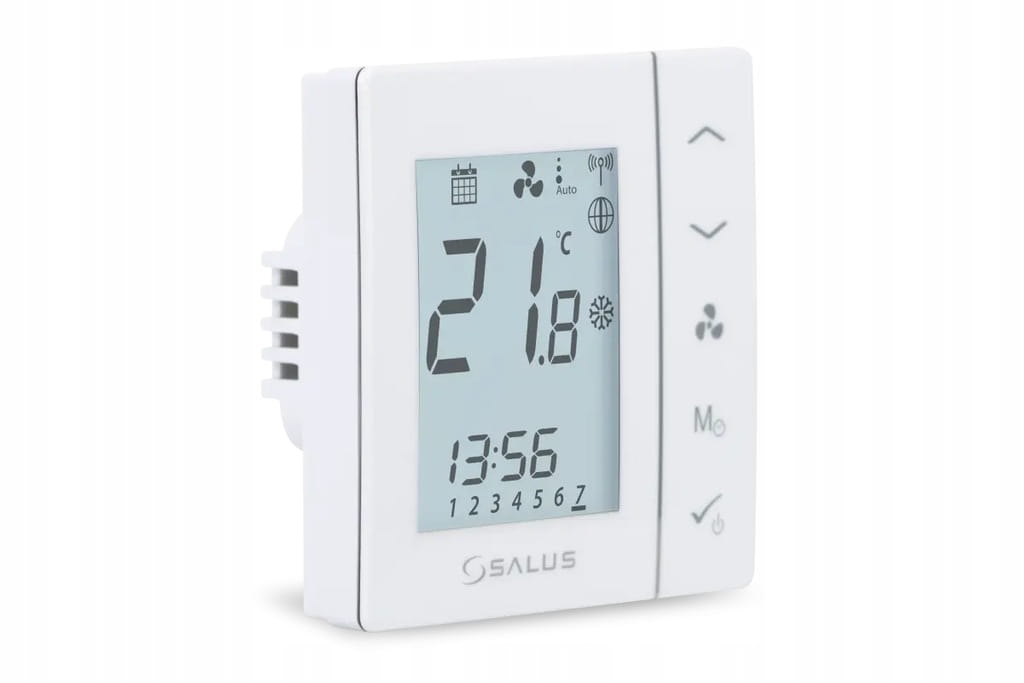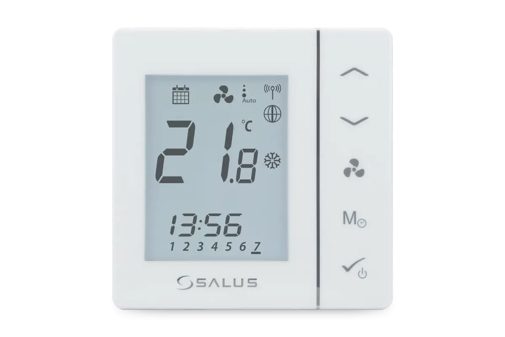 Regulator SALUS FV600 stosowany jest w sterowaniu klimakonwektorami, grzejnikami kanałowymi i nagrzewnicami wodnymi. Stosowany w celu utrzymania zadanej przez użytkownika temperatury w pomieszczeniu. Montowany jest w puszce. {pdtynkowy regulator SALUS FB600 posiada możliwość pracy w trybach dobowym lub tygodniowym. Pamięć ustawień zapisuje nastawę w przypadku braku zasilania. Zwiększa zasięg sieci ZigBee. Posiada możliwość współpracy z Amazon ALEXA.