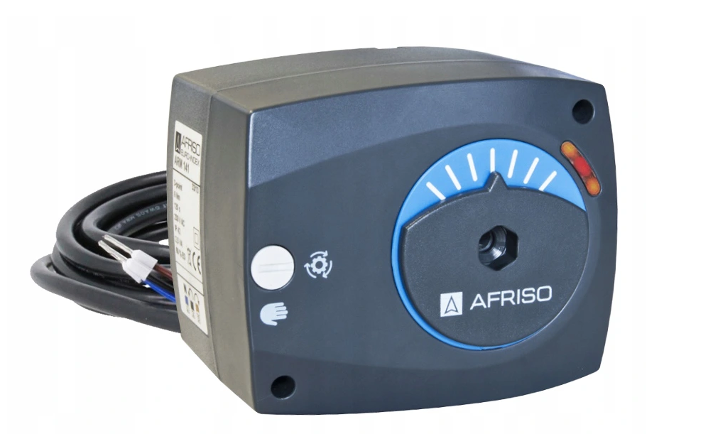 Siłownik ARM 141 AFRISO wyróżnia się nowoczesną konstrukcją i atrakcyjnym wyglądem. Wskazania na niebieskim pierścieniu siłownika określają pozycję zwieradła zaworu mieszającego. Ręczne obracanie zaworu możliwe jest dzięki zastosowaniu specjalnego sprzęgła. Czytelny schemat elektryczny podłączenia umieszczony jest z boku siłownika. Nie wymaga konserwacji. Dostarczany jest z przewodem elektrycznym o długości 2 m.