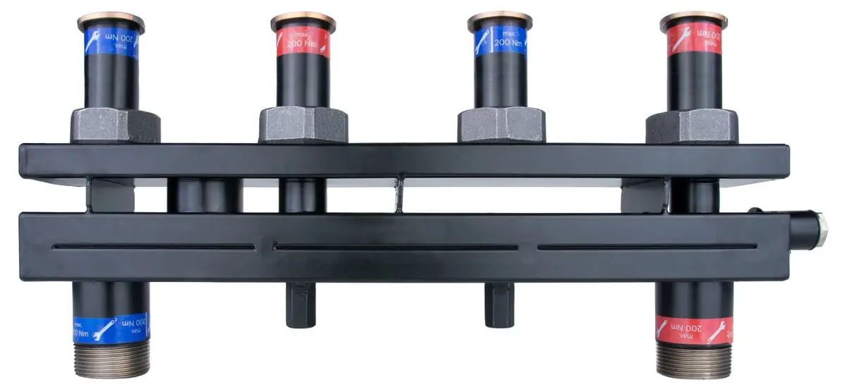 Rozdzielacz AFRISO KSV 125-2 HW przeznaczone są do szybkiego i wygodnego podłączenia dwóch grup pompowych AFRISO PrimoTherm 180-1 i AFRISO PrimoTherm 180-2 do jednego źródła ciepła. Rozdzielacze wyposażono w zintegrowane sprzęgło hydrauliczne.