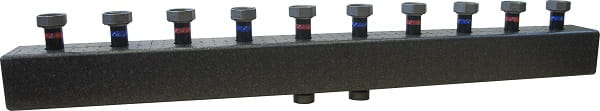 Rozdzielacz AFRISO KSV 125-5 składa się 5 par przyłączy zasilających i powrotnych obiegów pompowych. Całość znajduje się w zdejmowanej izolacji termicznej. Wersja rozdzielaczy AFRISO KSV wyposażona jest dodatkowo w sprzęgło hydrauliczne do rozdzielania obiegów oraz przyłącze do zamontowania zaworu spustowego lub czujnika temperatury.
