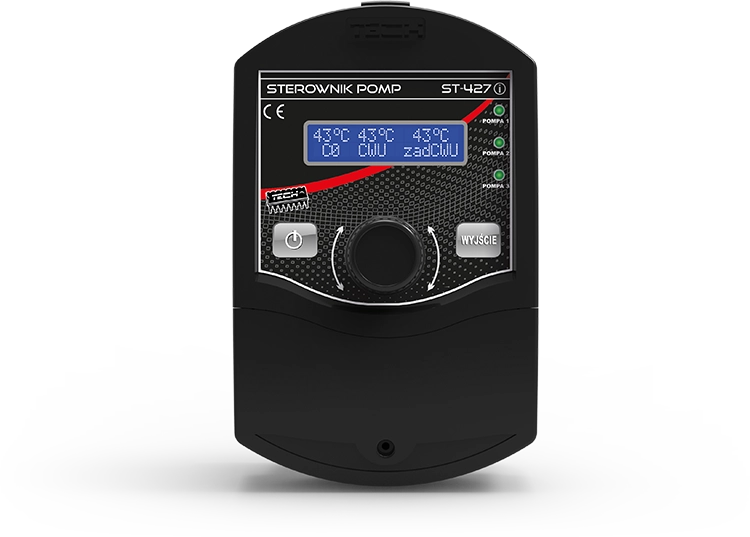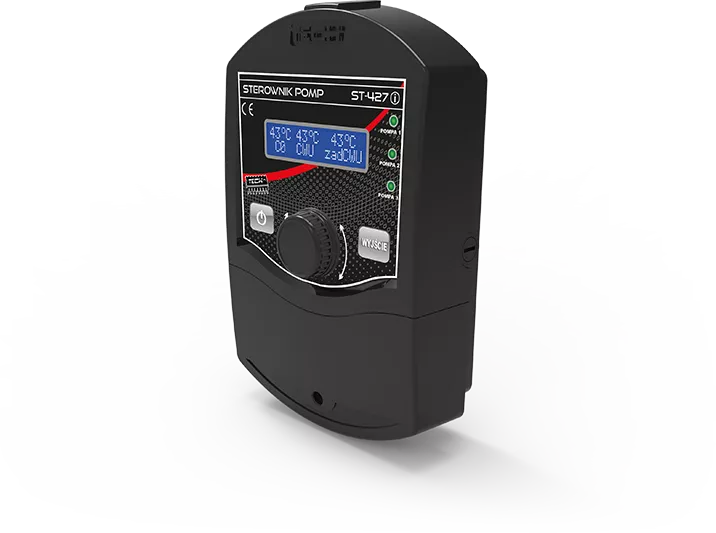Sterownik do pomp TECH ST-427i przeznaczony jest do sterowania pracą trzech pomp. Zadaniem regulatora jest załączanie pomp, jeśli temperatura przekroczy progową wartość załączenia, oraz wyłączanie jej jeśli kocioł wychłodzi się (na skutek wygaszenia). Dla drugiej pompy, oprócz temperatury załączenia, użytkownik ustawia temperaturę zadaną, do osiągnięcia której pompa będzie pracować. Istnieje możliwość dowolnego ustawienia priorytetów pracy pomp.
