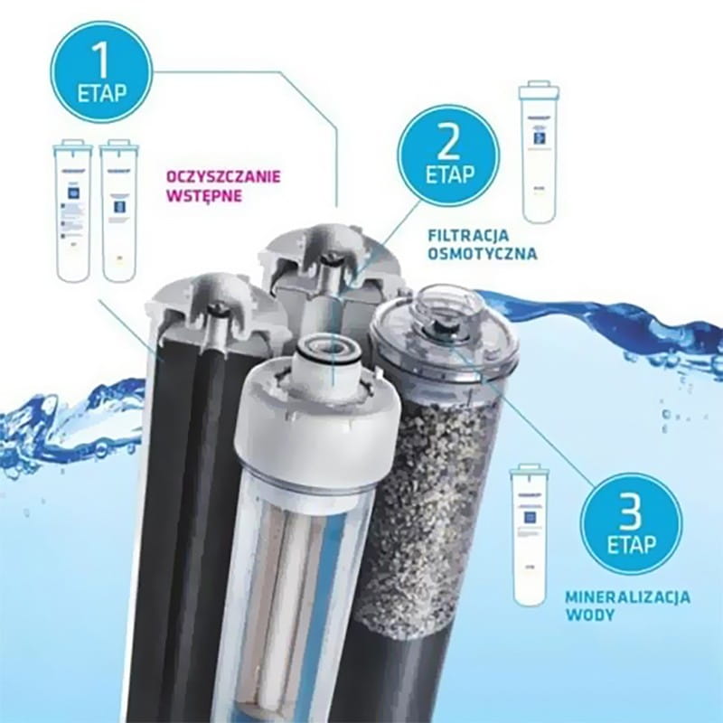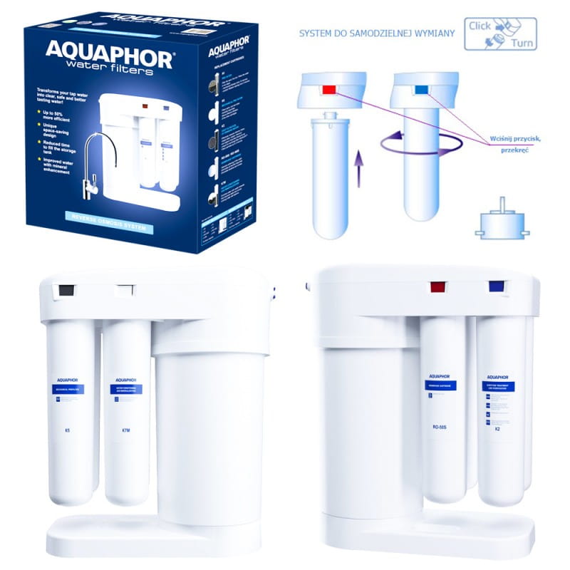 - Wymienne wkłady filtrujące: K5, K2, RO-50S, K7M