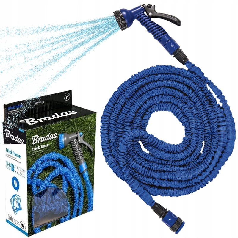 BRADAS TRICK HOSE - wąż ogrodowy BRADAS rozciągliwy 5-15m ciemnoniebieski + pistolet 7 funkcyjny BRADAS