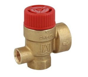Zawór bezpieczeństwa do instalacji grzewczych (pokrętło czerwone) z możliwością podpięcia manometru służący do zabezpieczenia urządzenia przed nadmiernym wzrostem ciśnienia w instalacji.