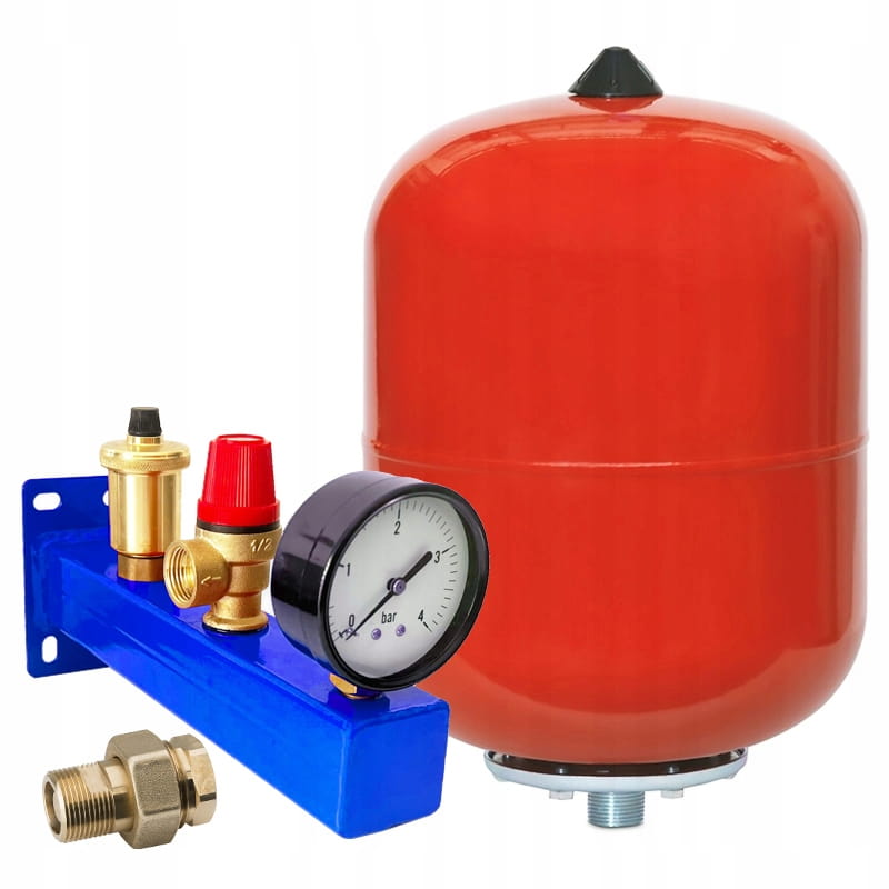 Zestaw c.o. 8 litrów to kompletny układ zabezpieczający do instalacji grzewczej. Składa się on z naczynia przeponowego o pojemności 8 litrów, grupy bezpieczeństwa o ciśnieniu 3 bar z odpowietrznikiem automatycznym oraz szybkozłącza z dwoma zaworami stopowymi.