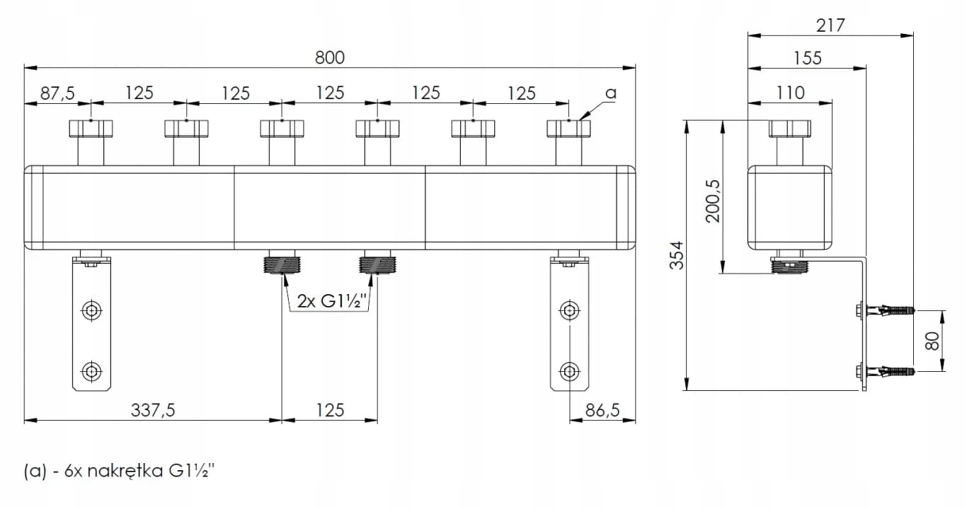 - Przyłącza od strony rozdzielacza: 2x G1½"