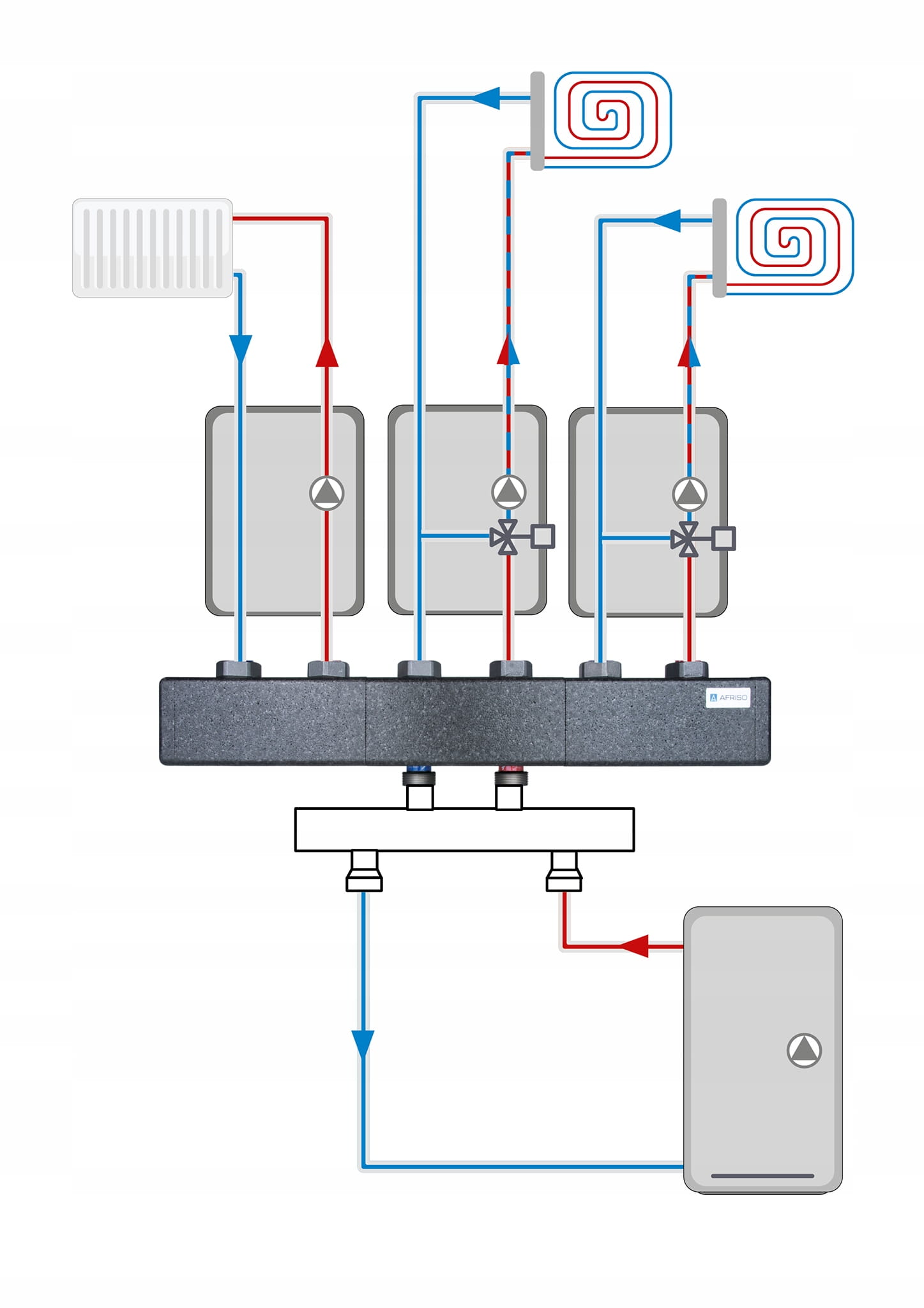 Zestaw grup pompowych PrimoTherm K 180-2 AFRISO z rozdzielaczem i pompą IBO IVO - 3 obiegi