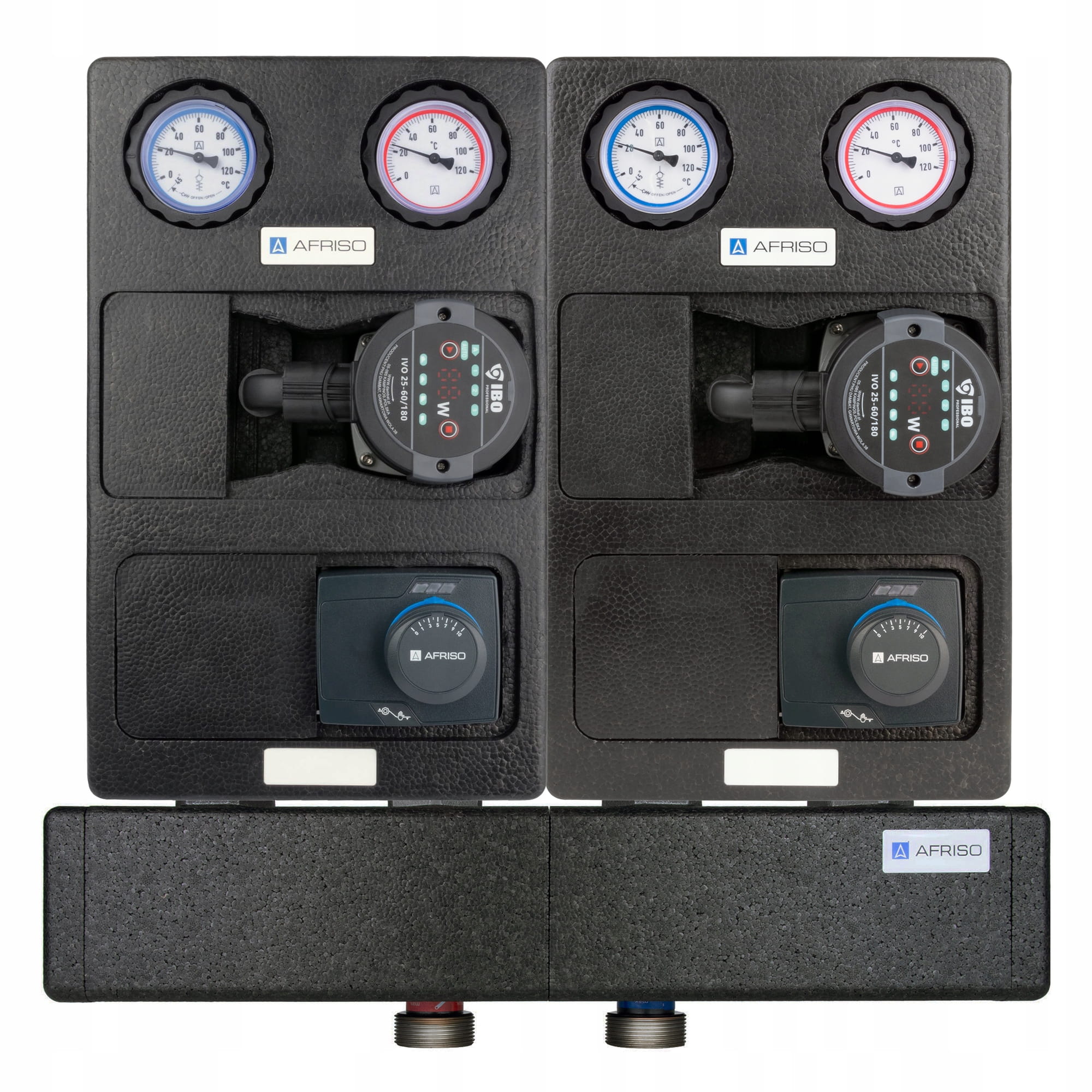 Zestaw grup pompowych PrimoTherm K 180-2 AFRISO z rozdzielaczem, pompami IBO IVO, zaworami ARV i siłownikami ARM 343 AFRISO