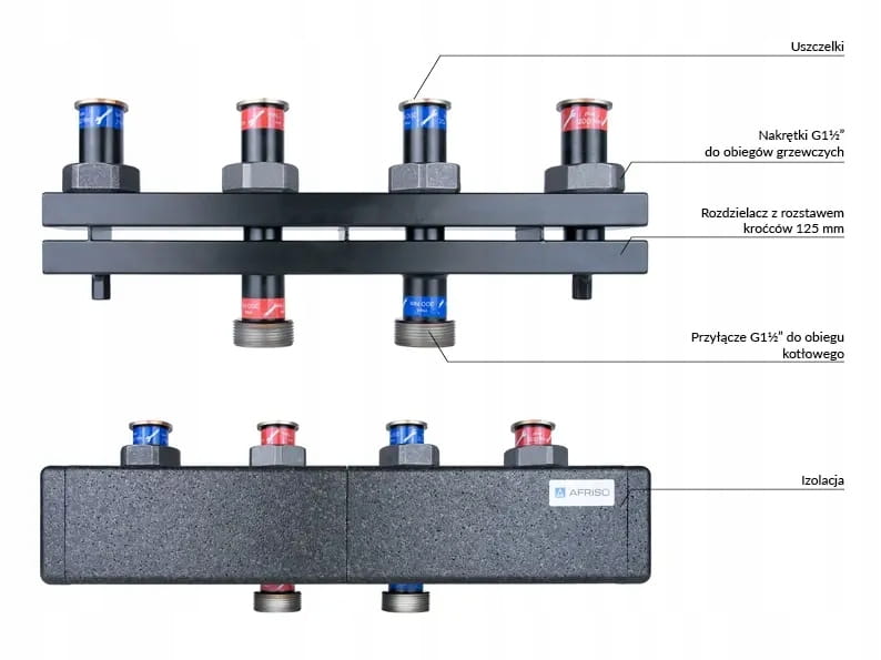 - Przyłącza od strony rozdzielacza: 2x G1½"