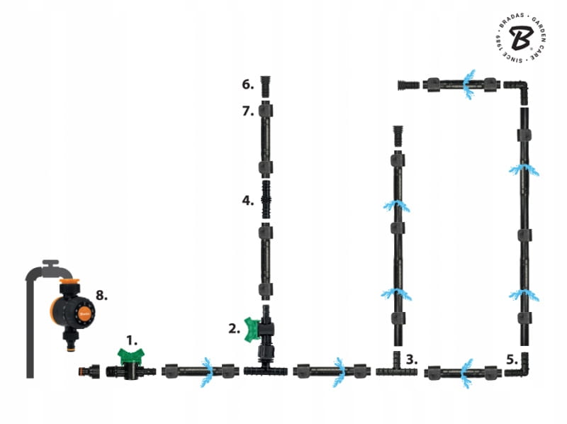 Zestaw Bradas Water Flow Drip z wężem kroplującym 50m - DANE TECHNICZNE: